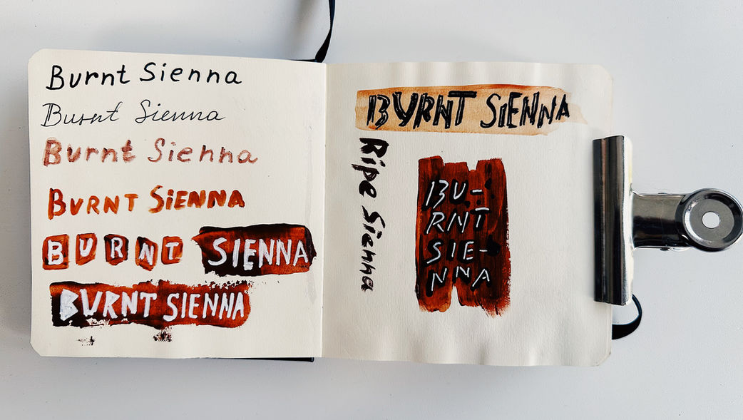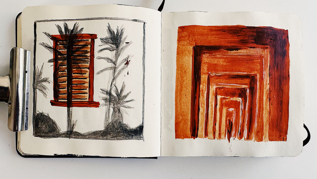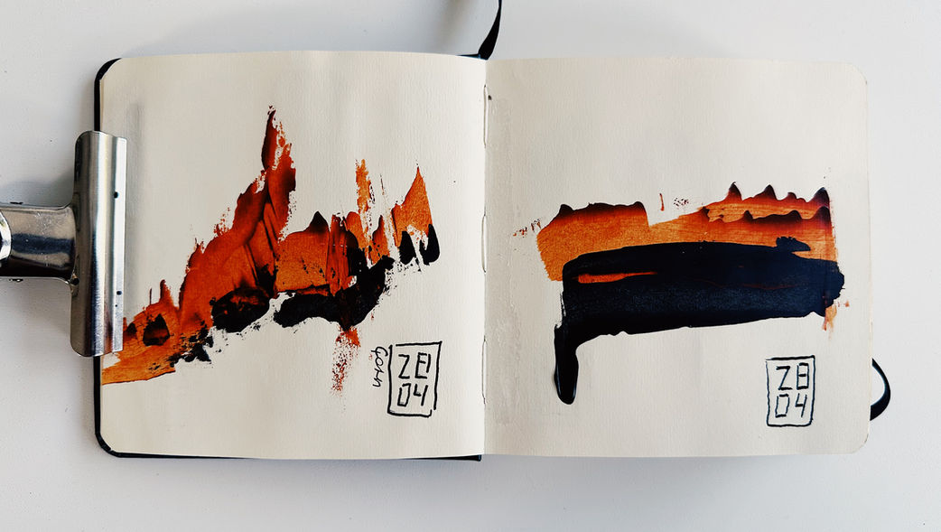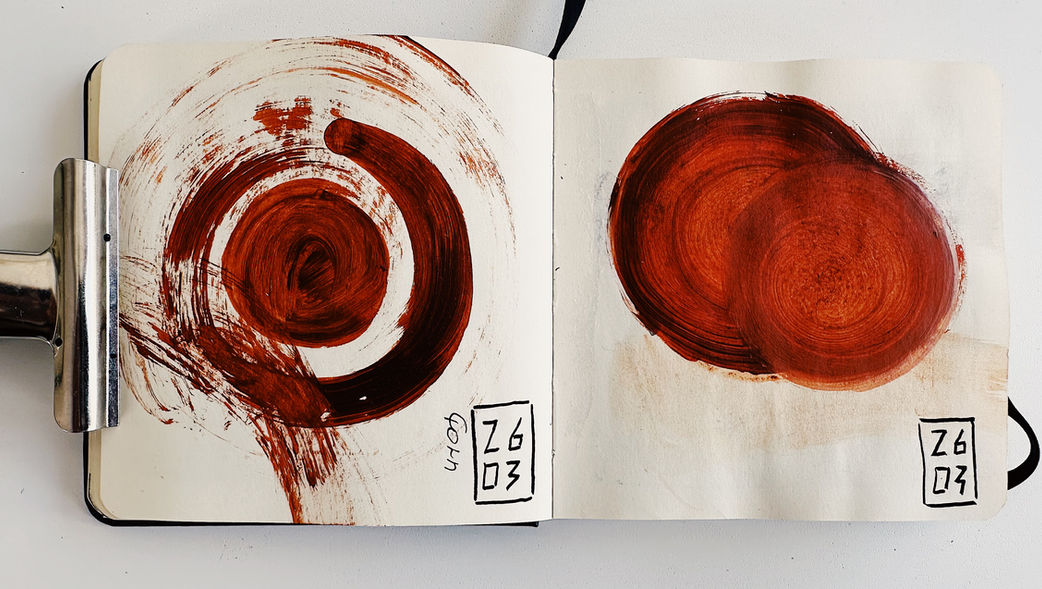 This research sketchbook, created in acrylic on paper, continues my exploration of burnt sienna, white, and black in a smaller and more intimate format. Through minimal gestures and layered textures, I work with observation, reduction, and balance, allowing each page to become a field of rhythm, tension, and stillness.