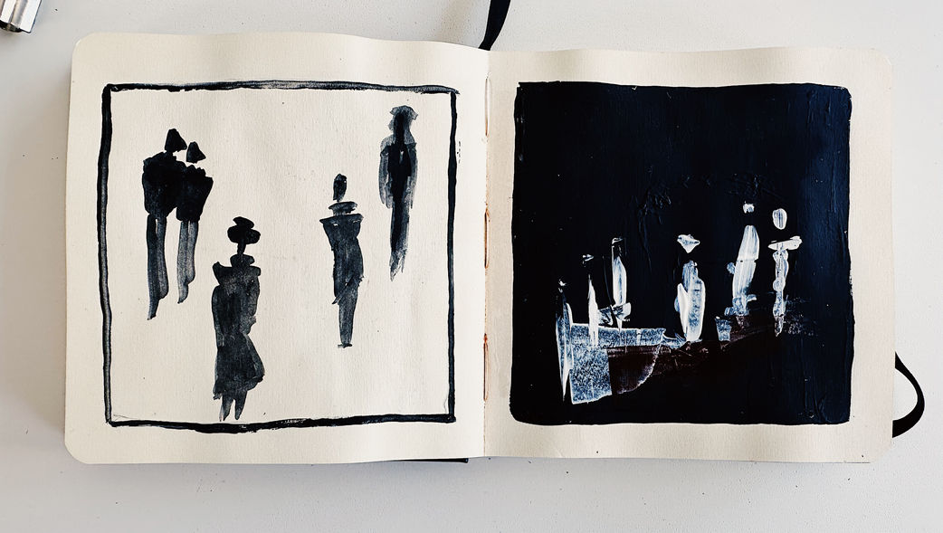 The sketchbook preserves fragments of an ongoing dialogue between color, memory, and silence. It functions both as a study and as a record of my process, tracing how visual ideas are tested, condensed, and translated into a tactile scale.